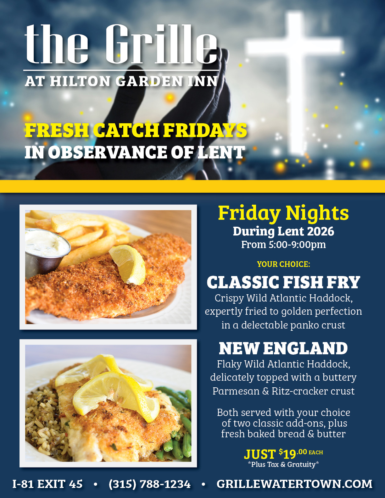 Delicious Food Awaits at the Grille Conveniently located inside the Hilton Garden Inn, Arsenal Street, Watertown, NY
